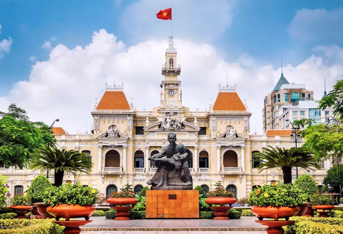 Visit the Reunification Palace, a historical landmark designed by architect Ngo Viet Thu, built on the site of the former Norodom Palace.